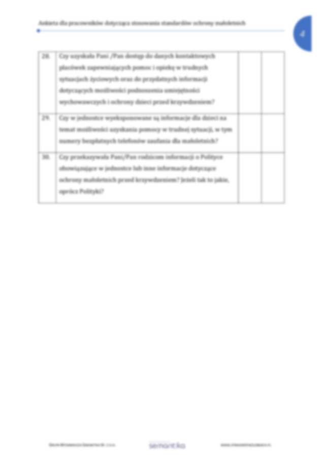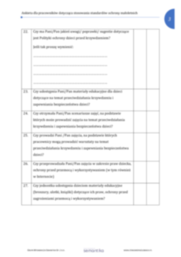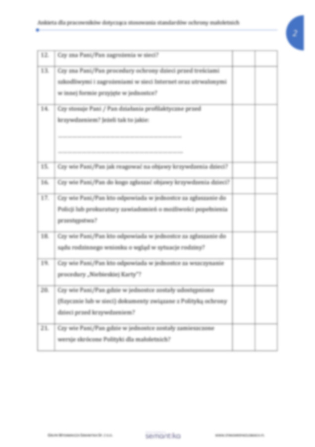 Ankieta dla pracowników dotycząca stosowania standardow ochrony małoletnich