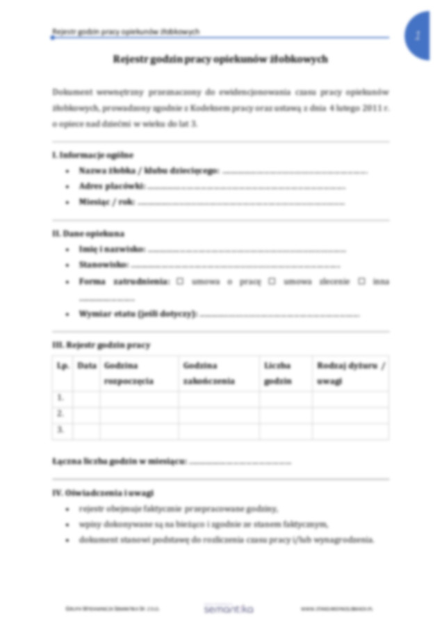 Standard 3.1 Umowa o świadczenie usług żłobkowych