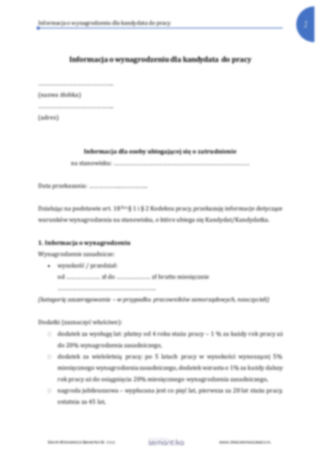 Informacja o wynagrodzeniu dla kandydata do pracy