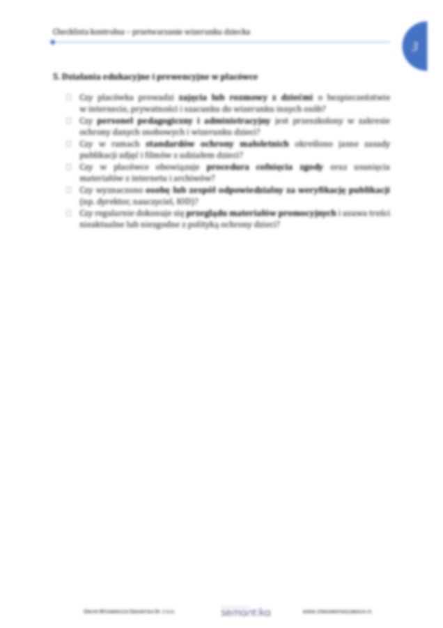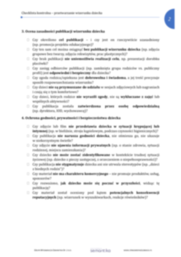 Checklista kontrolna – przetwarzanie wizerunku dziecka
