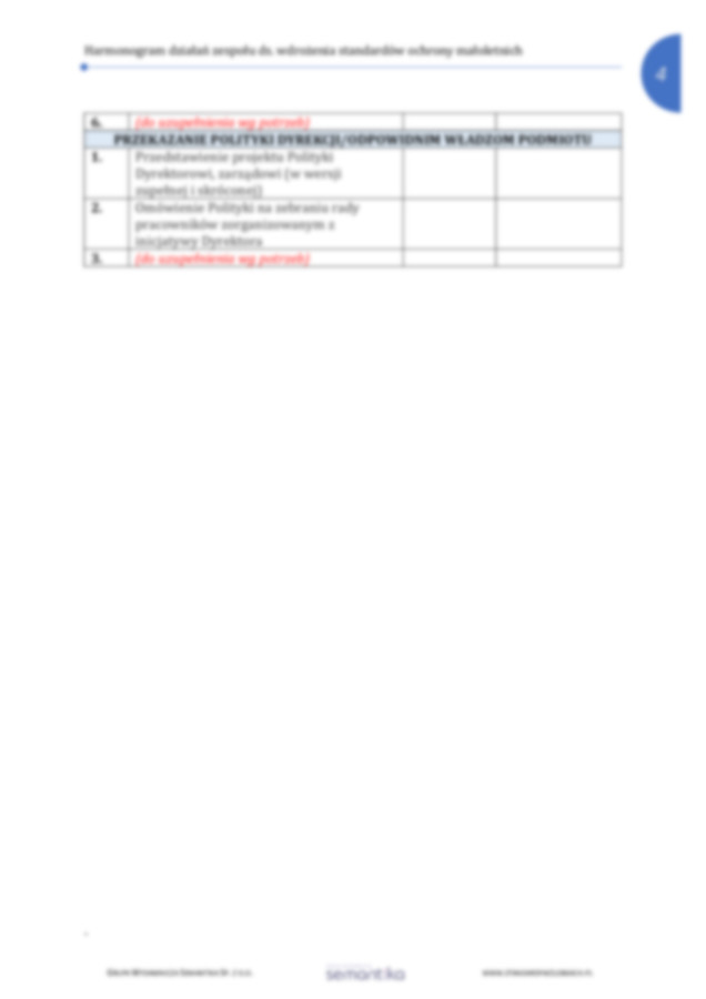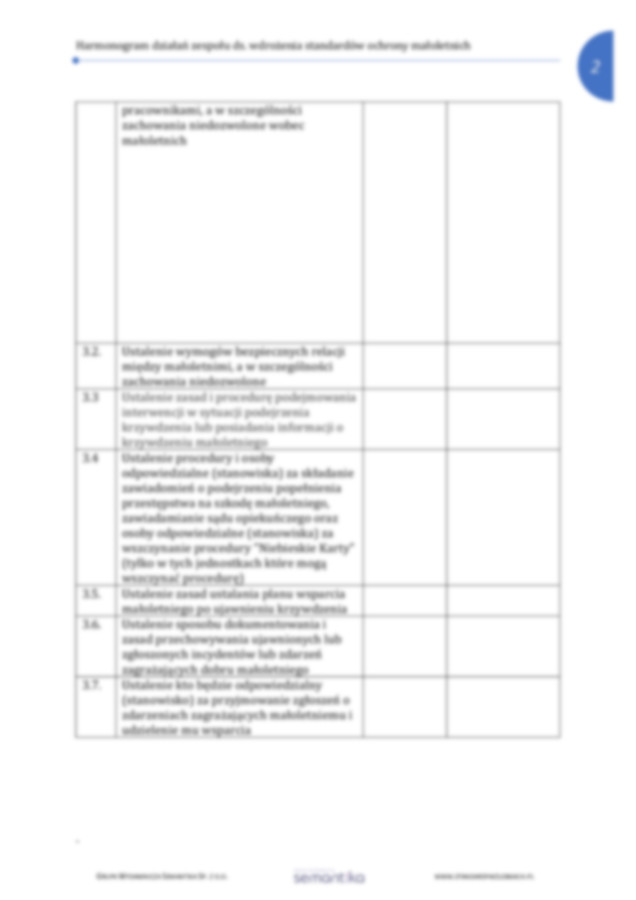 Strona główna / Dokumenty / Standardy Ochrony Małoletnich / Harmonogram prac zespołu ds. wdrożenia standardó w ochrony małoletnich