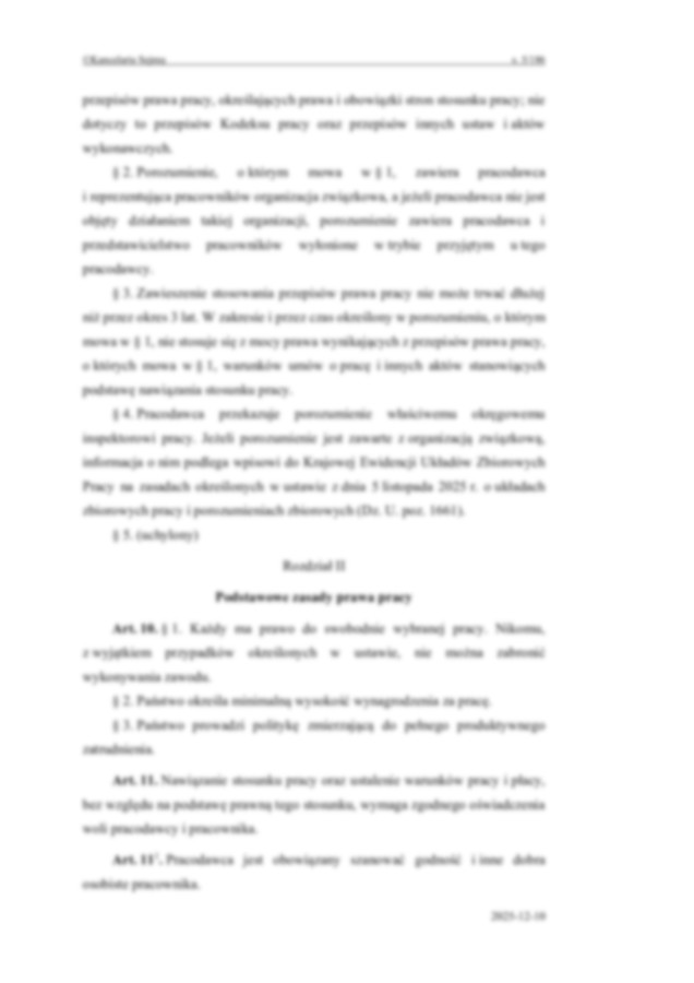 Na podstawie ustawy z dnia 26 czerwca 1974 r. –  Kodeks pracy (t.j. Dz. U. z 2025 r. poz. 277, 807, 1423 i 1661 oraz Dz. U. z 2026 r. poz. 25).