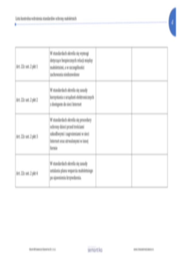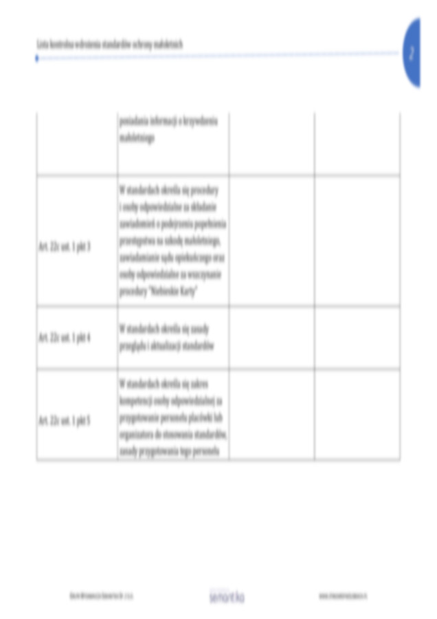 Strona główna / Dokumenty / Standardy Ochrony Małoletnich / Lista kontrolna dla Zespołu ds. wdrożenia standardów ochrony małoletnich