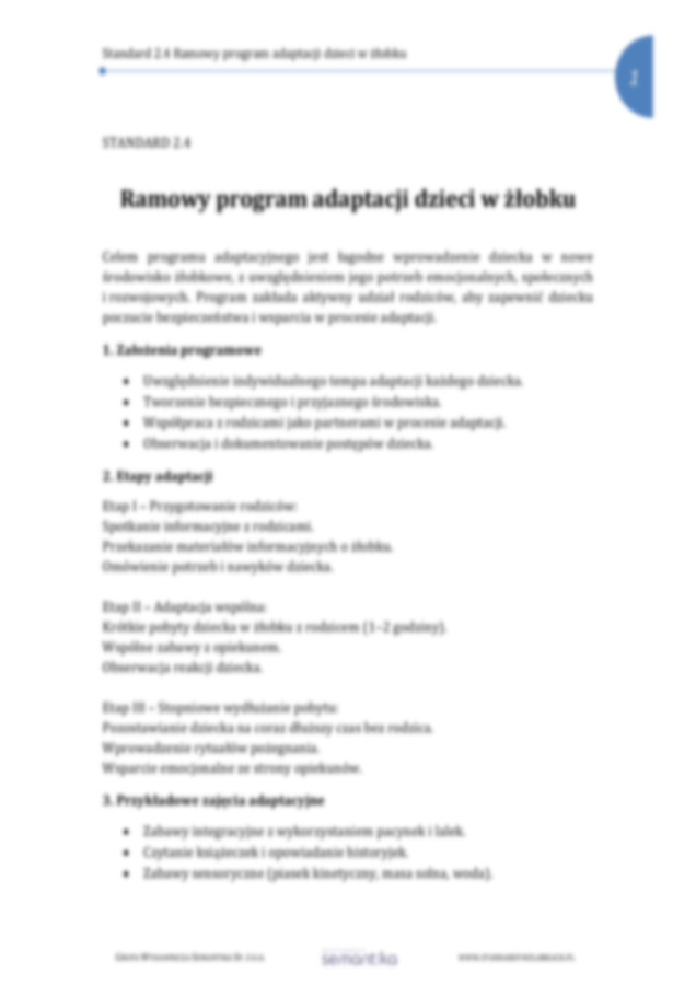 Standard 2.4 Ramowy program adaptacji dzieci w żłobku