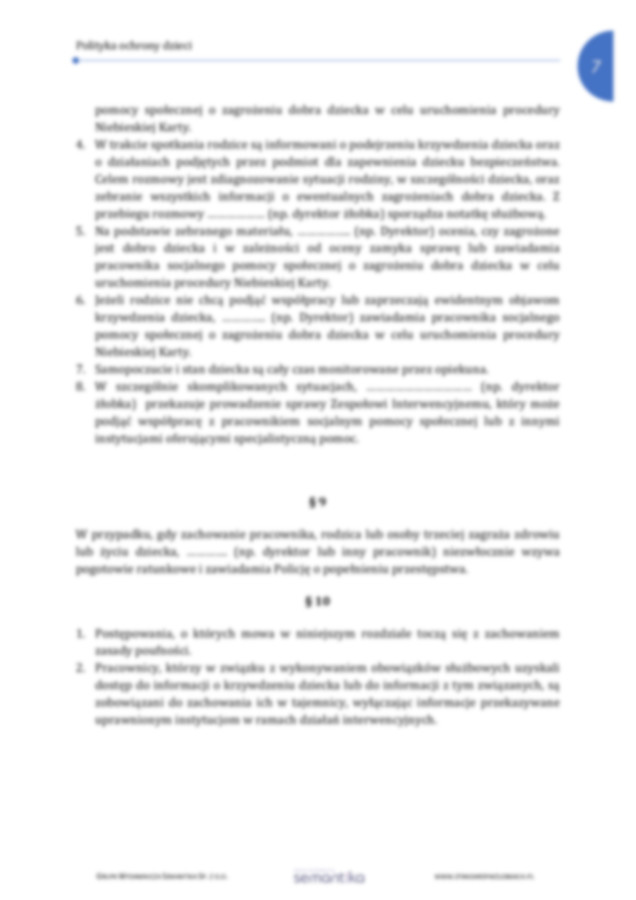 Polityka ochrony małoletnich w żłobkach i klubach dziecięcych wraz z niezbędnymi załącznikami
