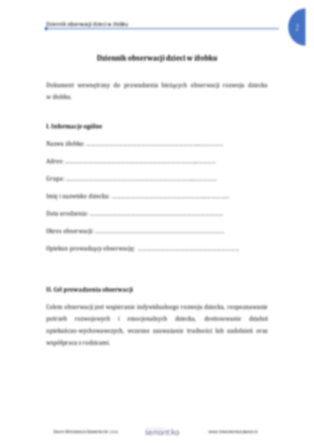 Standard 12.3.1 Dziennik obserwacji dzieci w żłobku