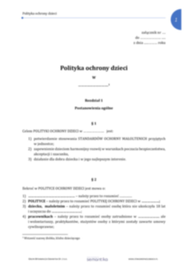 Polityka ochrony małoletnich w żłobkach i klubach dziecięcych wraz z niezbędnymi załącznikami