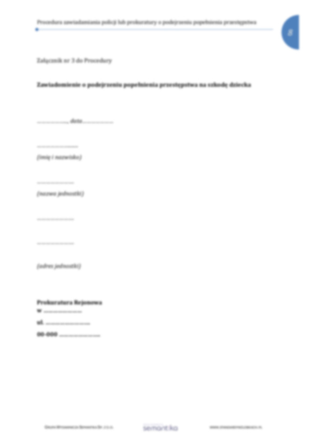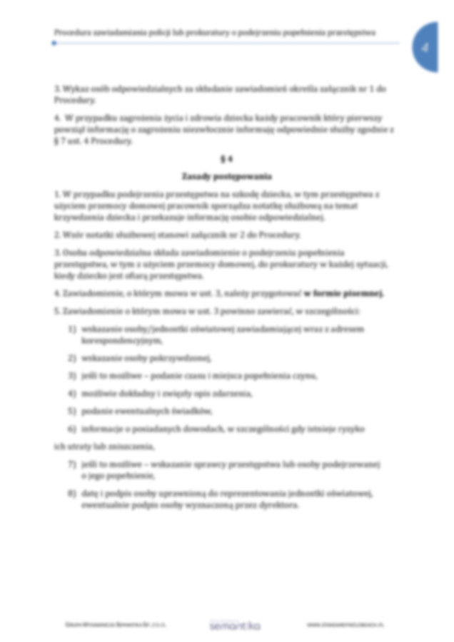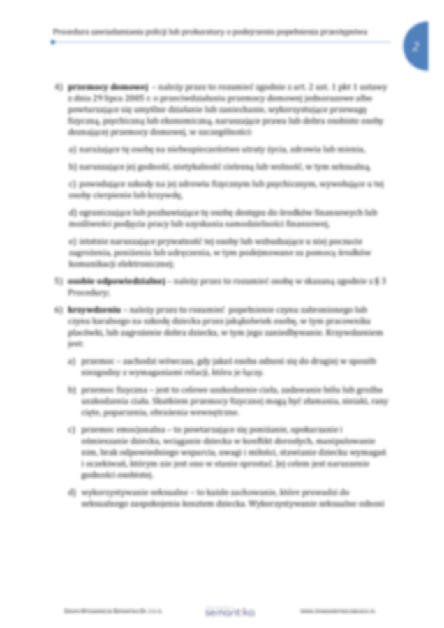 Strona główna / Dokumenty / Standardy Ochrony Małoletnich / Procedura i osoby odpowiedzialne za składanie zawiadomień o podejrzeniu popełnienia przestępstwa na szkodę małoletniego