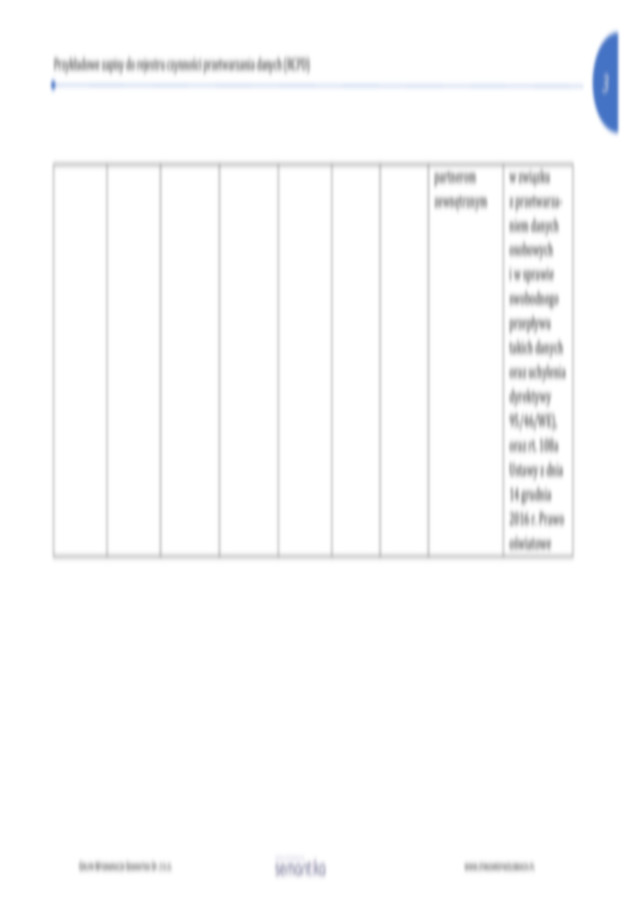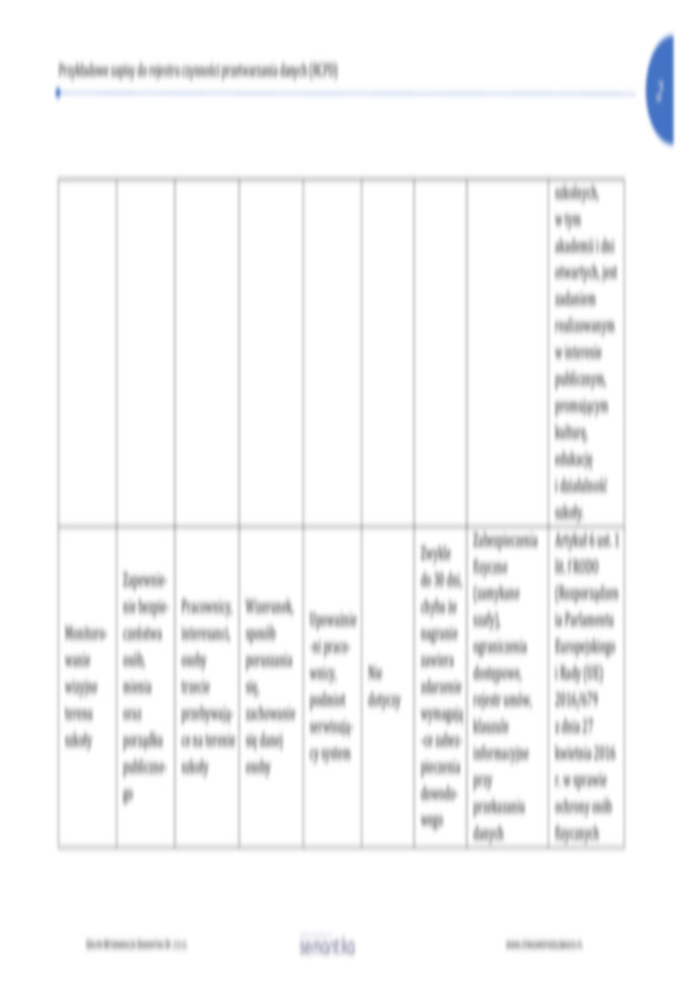 Przykładowe zapisy do rejestru czynności przetwarzania danych (RCPD)