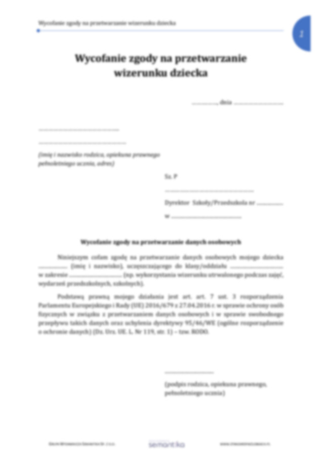 Wycofanie zgody na przetwarzanie wizerunku dziecka