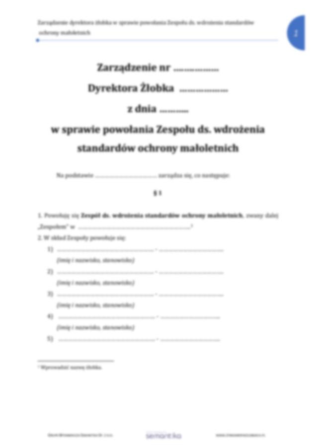 Zarządzenie dyrektora żłobka w sprawie powołania Zespołu ds. wdrożenia standardów ochrony