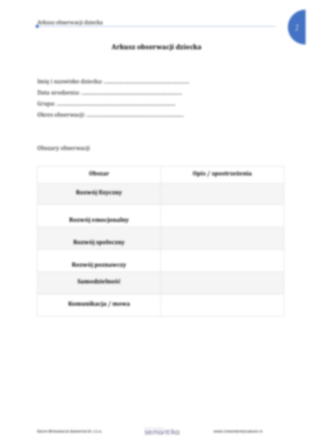 Standard 2.9 2.10 Arkusz obserwacji dziecka