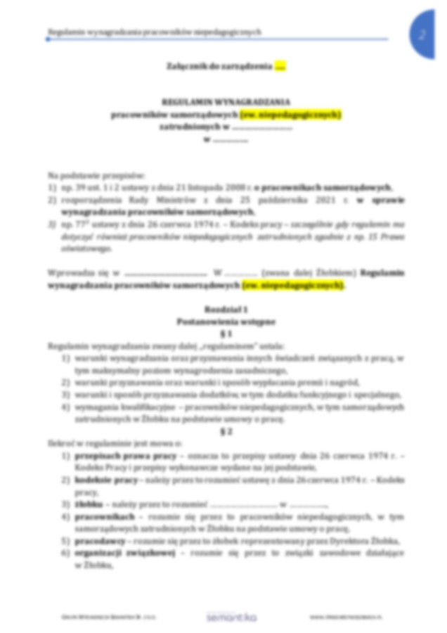 Na podstawie art. 39 ust. 1 i 2 ustawy z dnia 21 listopada 2008 r. o pracownikach samorządowych (Dz. U. z 2008 r. Nr 223, poz. 1458), rozporządzenia Rady Ministrów z dnia 25 października 2021 r. w sprawie wynagradzania pracowników samorządowych (Dz. U. z 2021 r. poz. 1990) oraz art. 77² ustawy z dnia 26 czerwca 1974 r. – Kodeks pracy (Dz. U. z 2025 r. poz. 277)