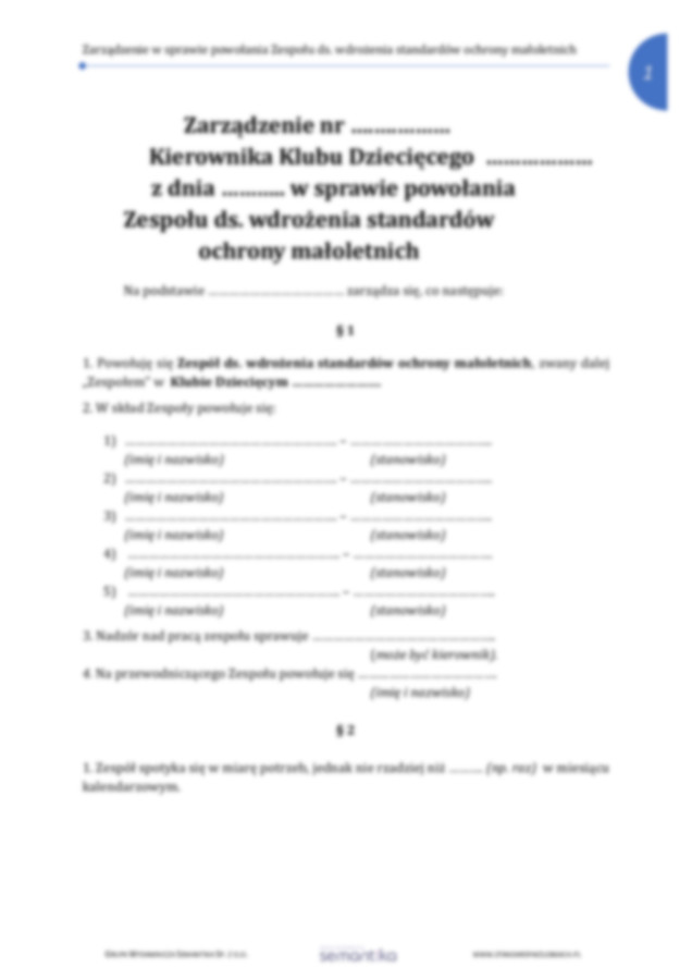 Zarządzenie kierownika klubu dziecięcego w sprawie powołania Zespołu ds. wdrożenia standardów ochrony małoletnich