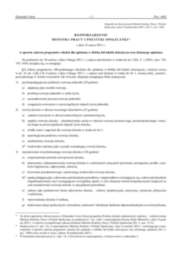 Tekst jednolity Rozporządzenia Ministra Pracy i Polityki Społecznej w sprawie zakresu programów szkoleń dla opiekuna w żłobku lub klubie dziecięcym oraz dziennego opiekuna