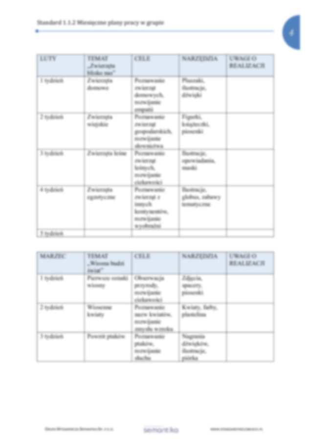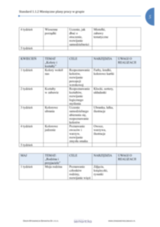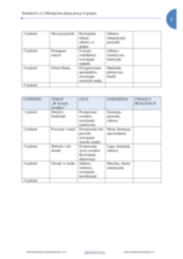 Strona główna / Dokumenty / Obszar pracy z dziećmi / Standard 1.1 Miesięczne plany pracy w grupie