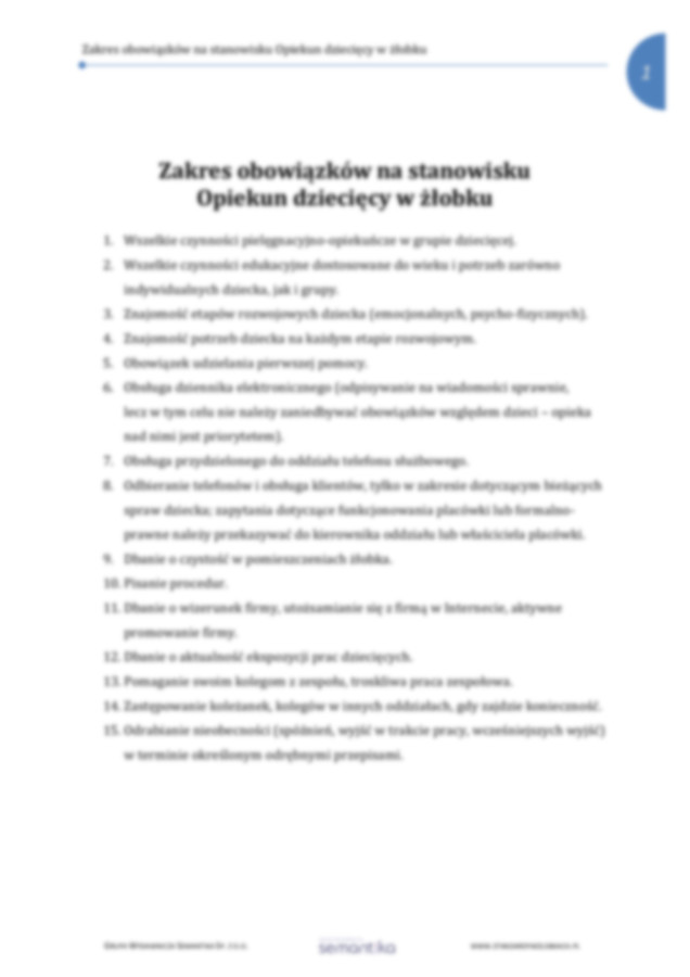 Zakres obowiązków na stanowisku opiekuna żłobkowego
