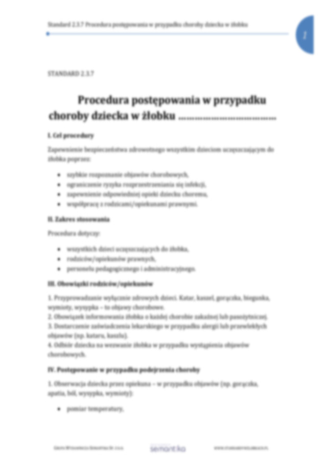 Standard 2.3 Procedura postępowania w przypadku choroby dziecka