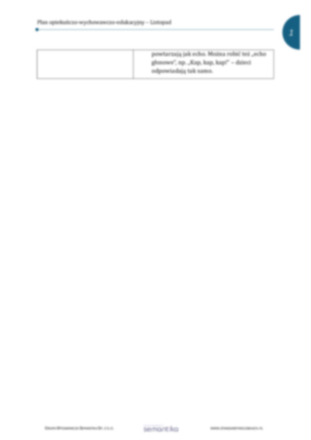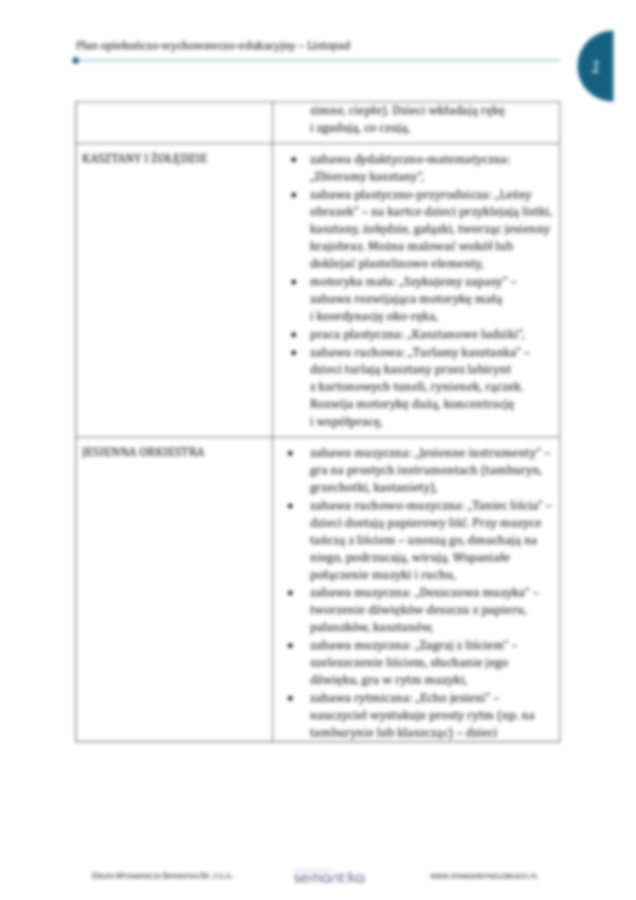 Propozycje aktywności na dany miesiąc w podziale tematycznym oraz rozbudowanej formie, wskazując cele, formy dydaktyczne i metodykę pracy.
