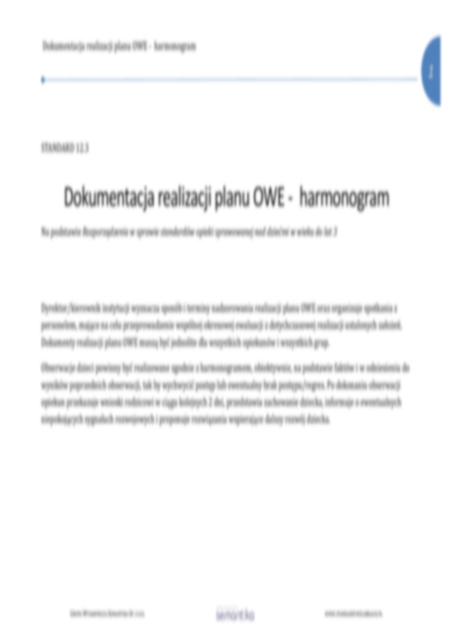Standard 12.3. Dokumentacja realizacji planu OWE - harmonogram