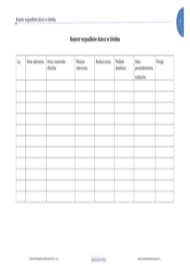 Standard 13.2.3 Rejestr wypadków dzieci w żłobku