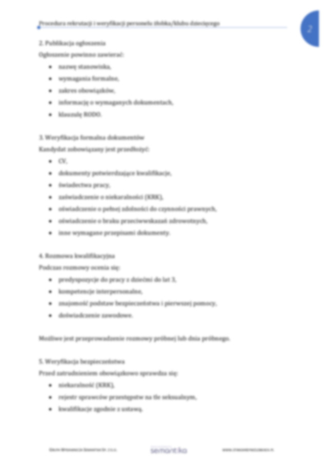 Strona główna / Dokumenty / Obszar pracy z personelem / Standard 12.2 Procedura rekrutacji i weryfikacji personelu
