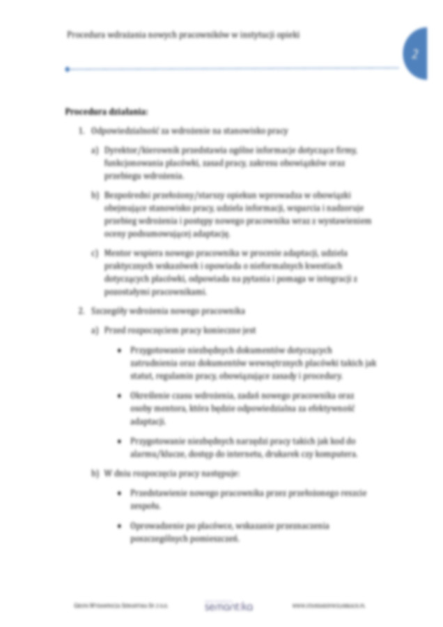 Standard 12.2. Procedura wdrażania nowych pracowników w instytucji opieki