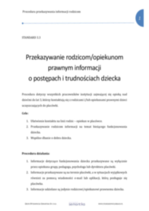 Standard 3.3. Procedura przekazywania informacji rodzicom