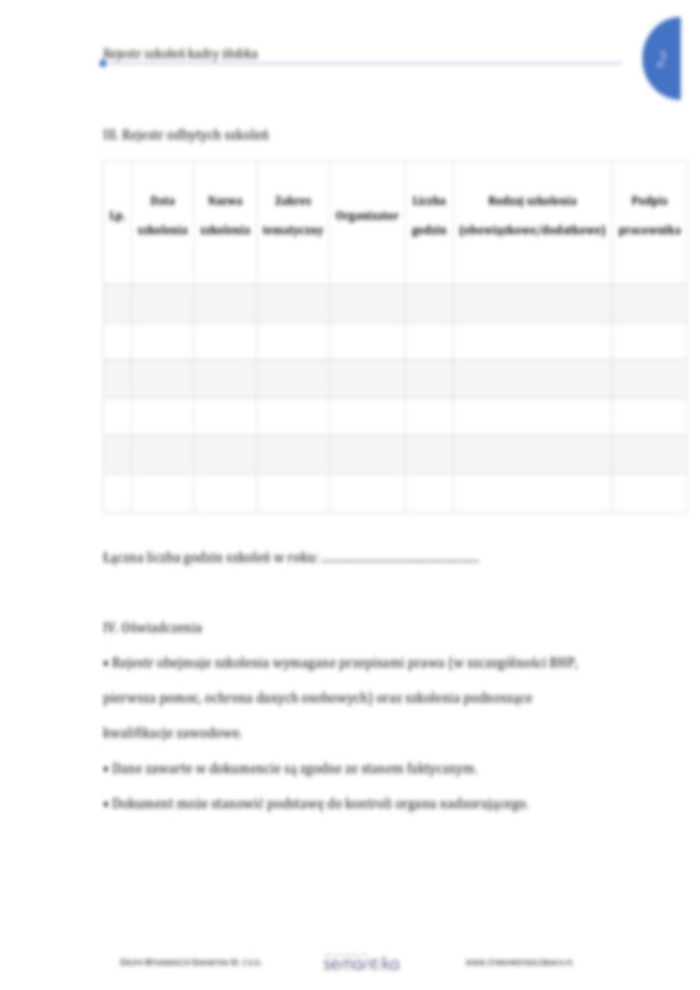 Standard 12.4 Rejestr szkoleń personelu