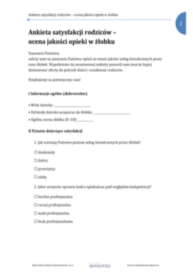 Standard 16.5 Ankieta satysfakcji rodziców ocena jakości opieki w żłobku
