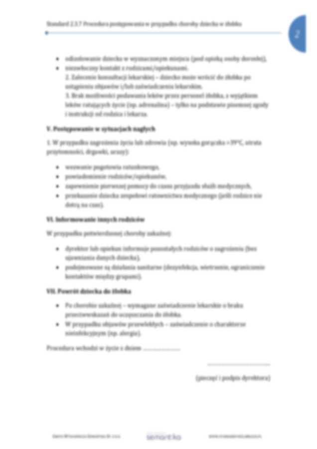 Standard 2.3 Procedura postępowania w przypadku choroby dziecka