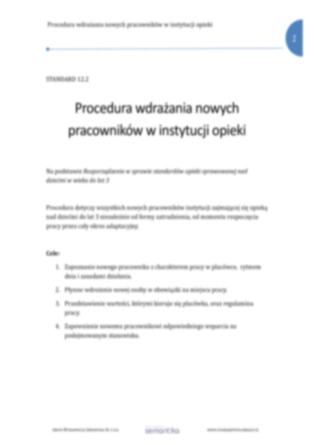Standard 12.2. Procedura wdrażania nowych pracowników w instytucji opieki