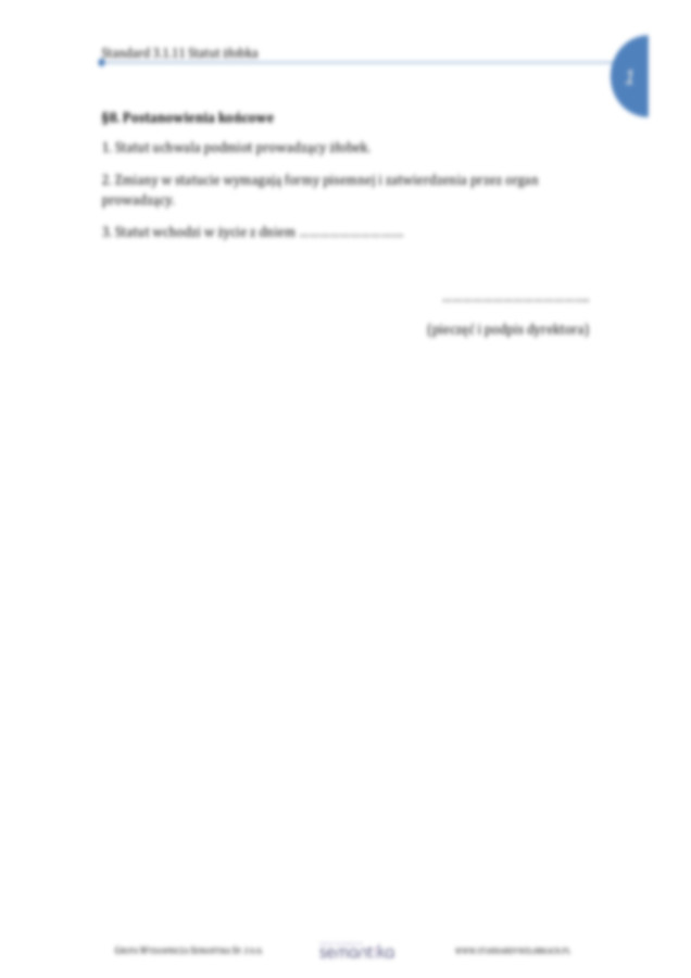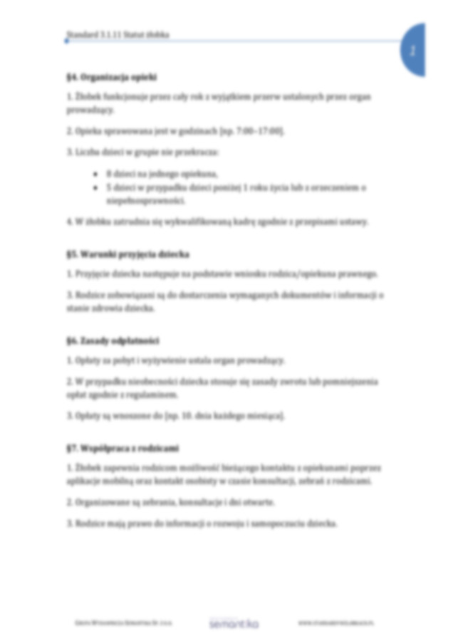 Standard 3.1 Stworzony jest dokument, w którym określone są prawa i obowiązki rodziców oraz instytucji opieki, które zostaną zawarte we wzorze umowy z rodzicami, dotyczącej pobytu dziecka w instytucji opieki lub w regulaminie organizacyjnym instytucji opieki.