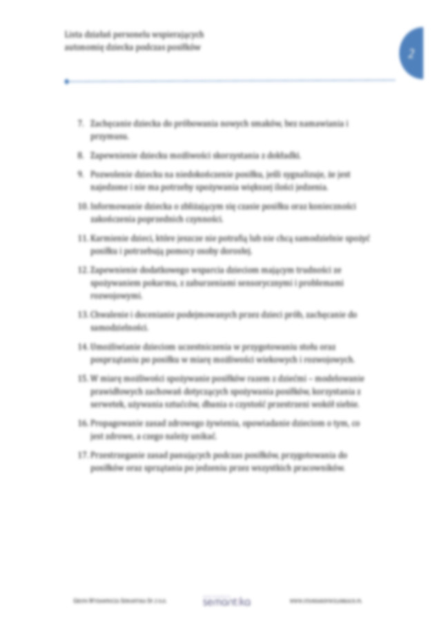 Standard 4.4 Instytucja opieki ma spisaną listȩ działań personelu, wspierających samodzielność dziecka podczas posiłków.