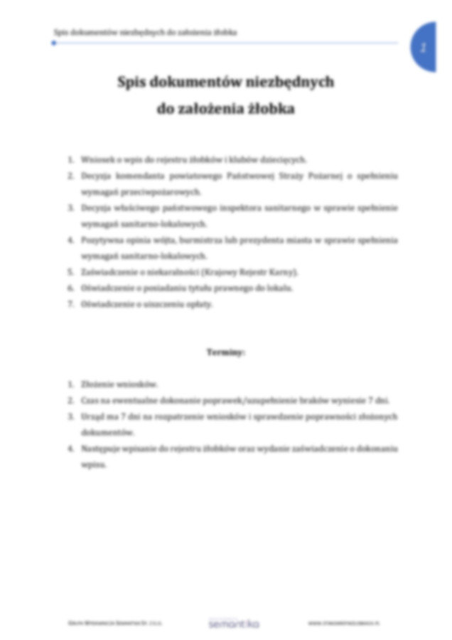 Spis dokumentów niezbędnych do założenia żłobka