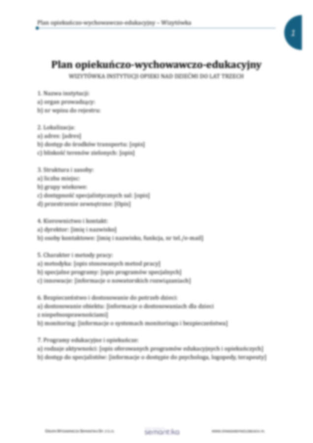 Standard 1.1. Plan OWE - Wizytówka placówki, cele, metody
