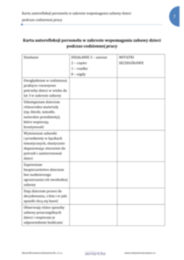 Standard 2.9 Karta autorefleksji personelu w zakresie wspomagania zabawy dzieci podczas codziennej pracy