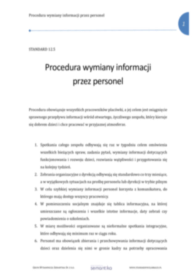 Standard 12.5 Procedura wymiany informacji przez personel