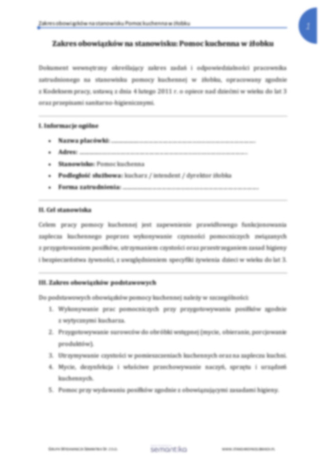 Zakres obowiązków na stanowisku pomocy kuchennej