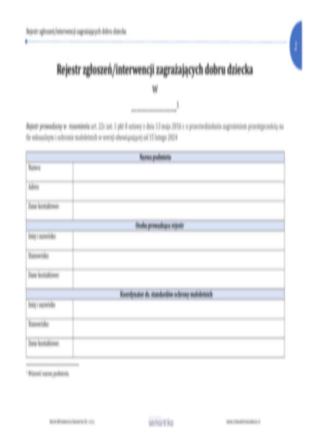 Rejestr zgłoszeń interwencji zagrażających dobru dziecka