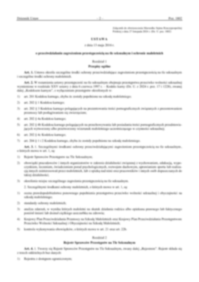 USTAWA z dnia 13 maja 2016 r. o przeciwdziałaniu zagrożeniom przestępczością na tle seksualnym i ochronie małoletnich