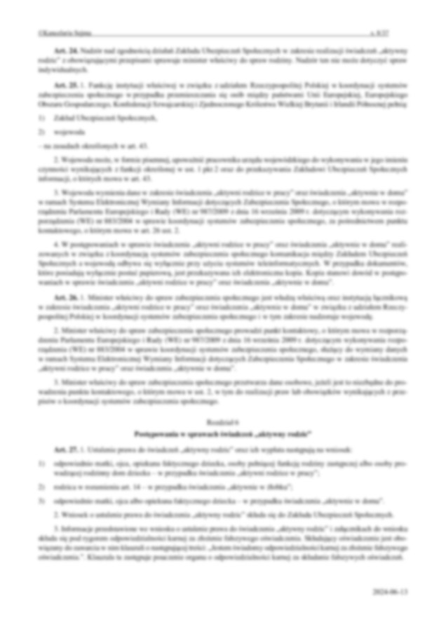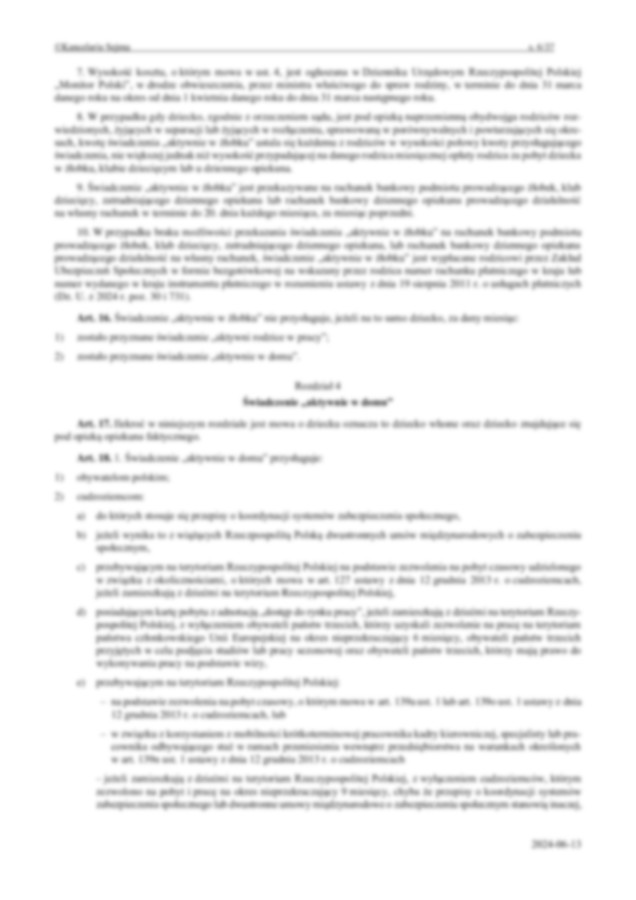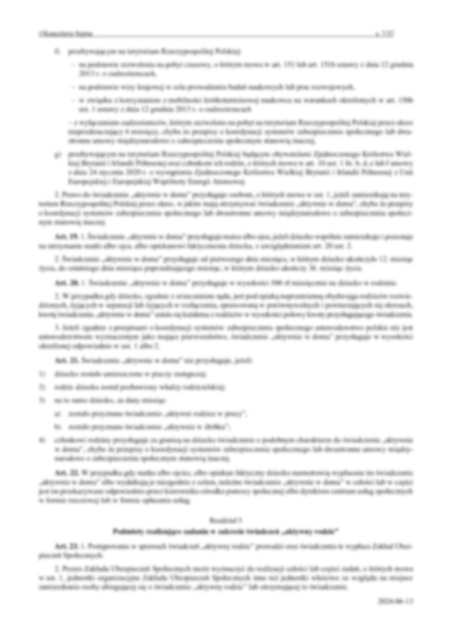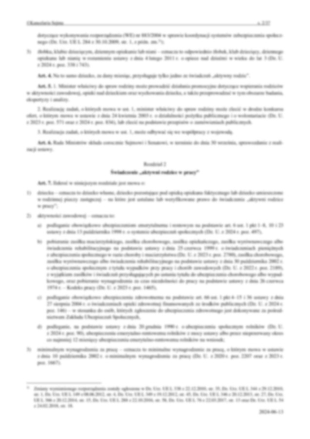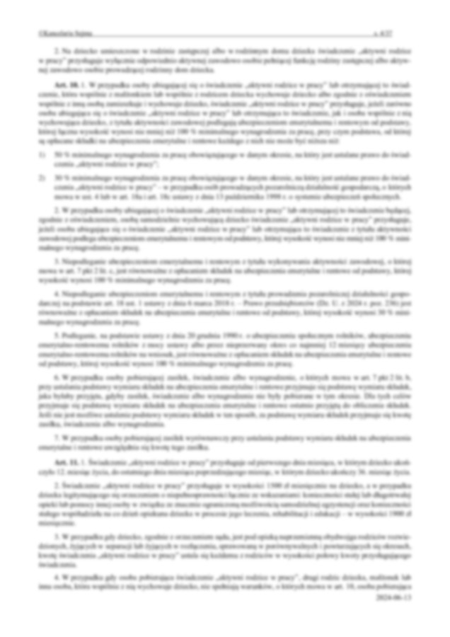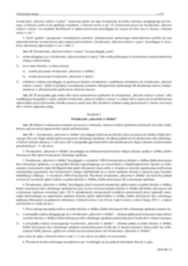 USTAWA z dnia 15 maja 2024 r. o wspieraniu rodziców w aktywności zawodowej oraz w wychowaniu dziecka – „Aktywny rodzic”