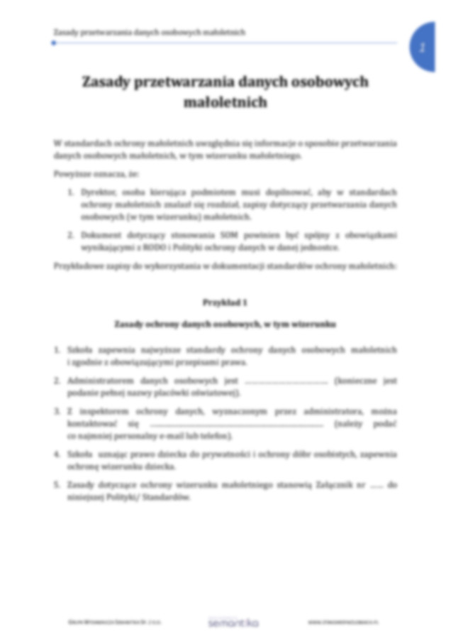 Zasady przetwarzania danych osobowych małoletnich