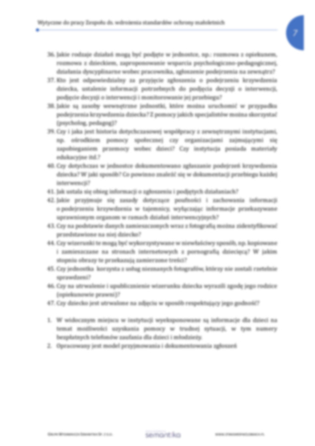 Strona główna / Dokumenty / Standardy Ochrony Małoletnich / Wytyczne do pracy Zespołu ds. wdrożenia standard ow ochrony małoletnich
