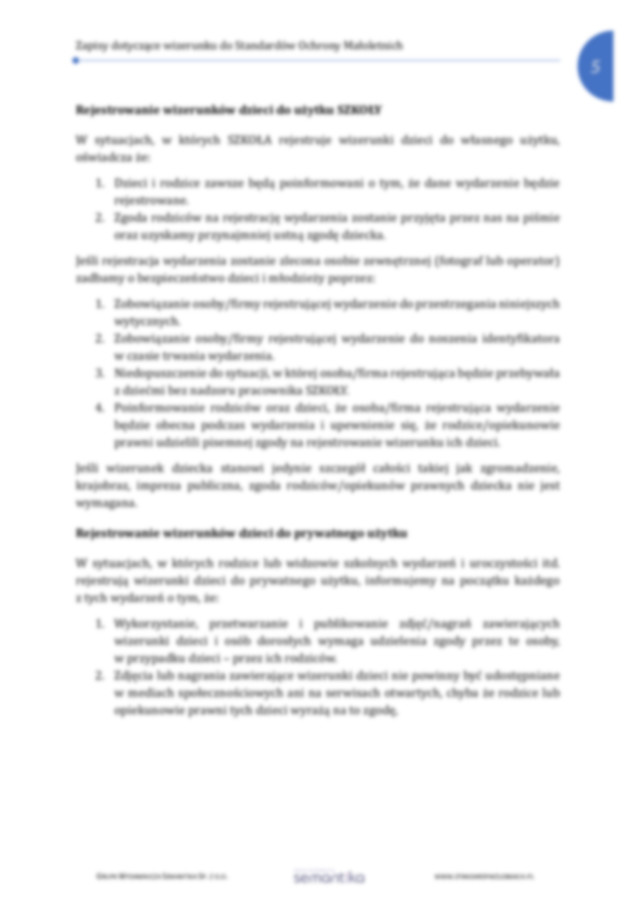 Zapisy dotyczące wizerunku do Standardów Ochrony Małoletnich