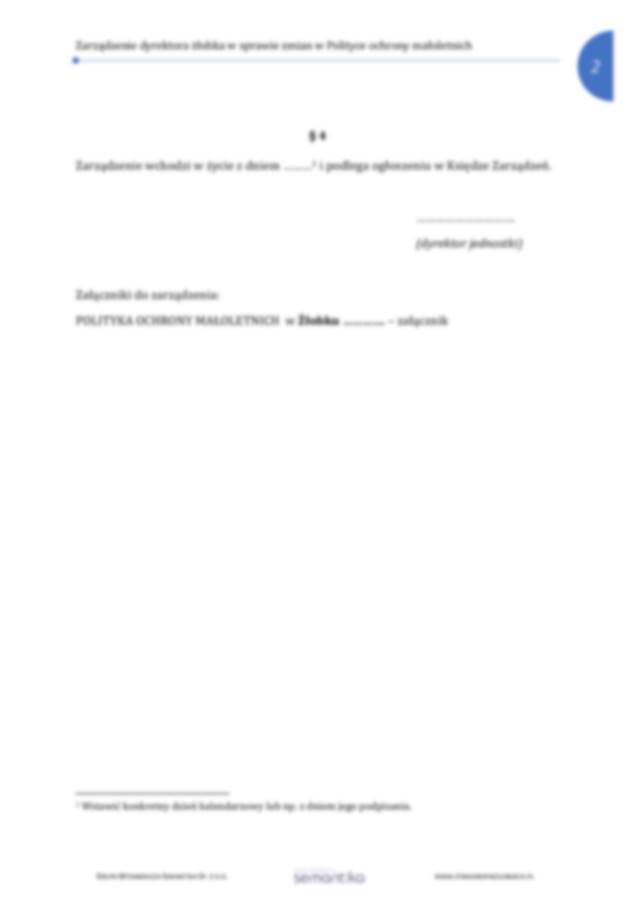 Zarządzenie dyrektora żłobka w sprawie zmian w Polityce ochrony małoletnich