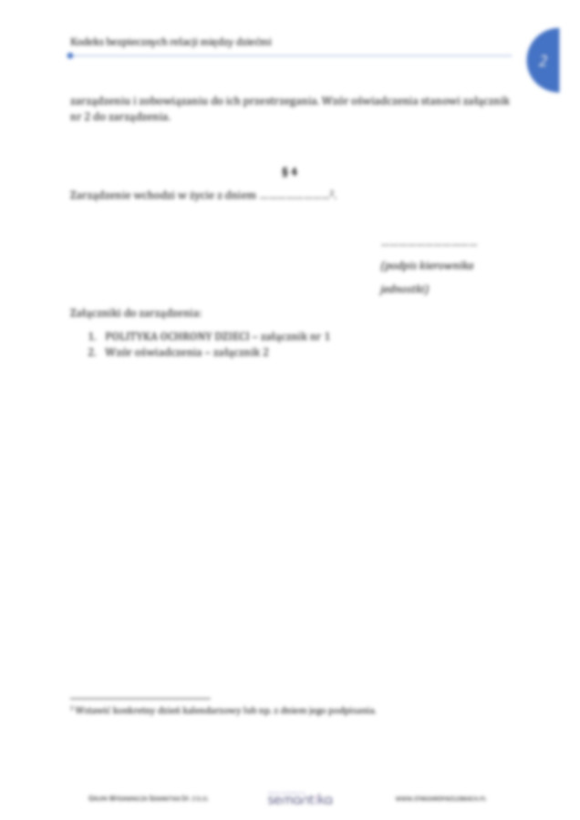 Zarządzenie kierownika klubu dziecięcego w sprawie wprowadzenia Polityki ochrony małoletnich