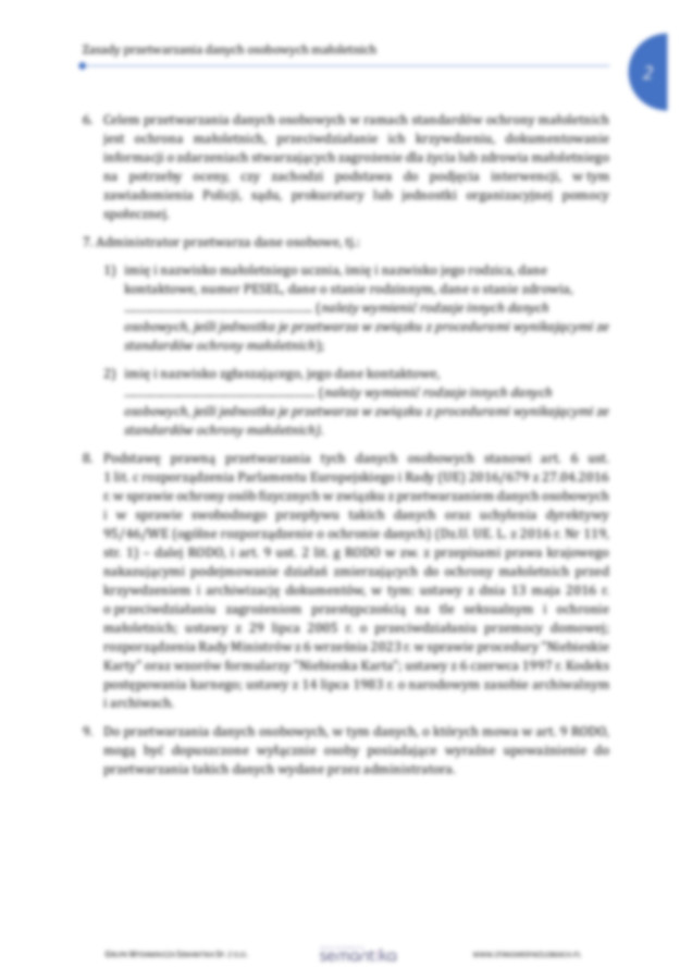 Strona główna / Dokumenty / Standardy Ochrony Małoletnich / Zasady przetwarzania danych osobowych małoletnich
