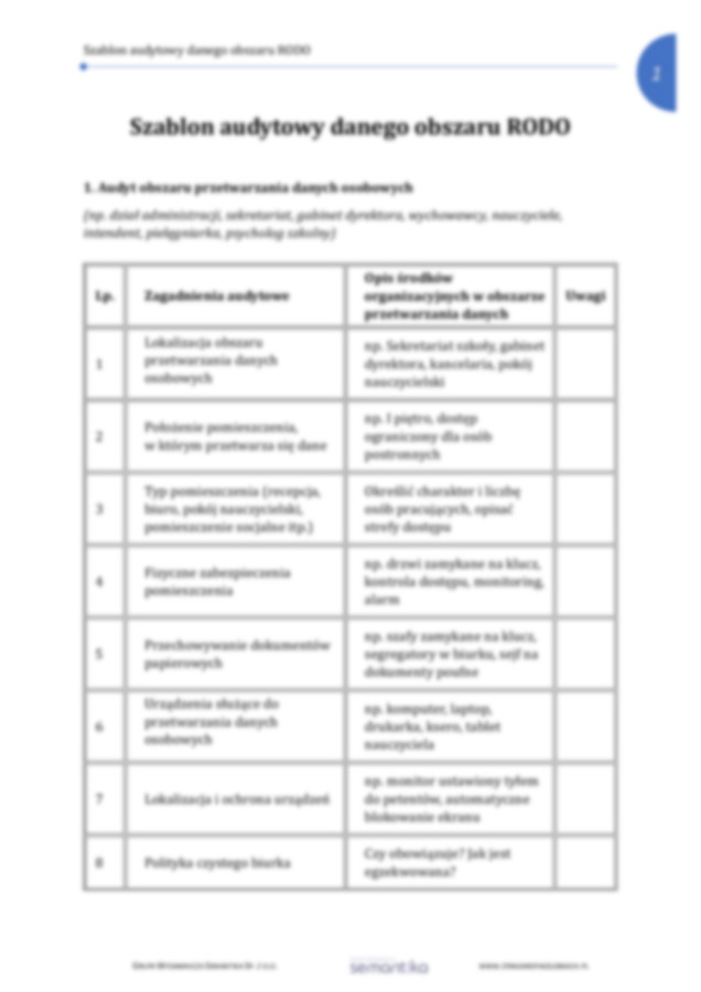 Szablon audytowy danego obszaru RODO